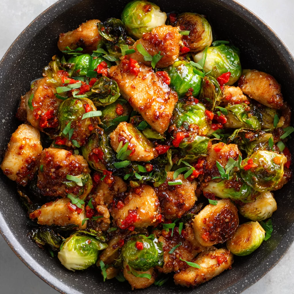 Air Fryer Sweet Chili Chicken & Brussels Sprouts: A Masterclass in Caramelization.