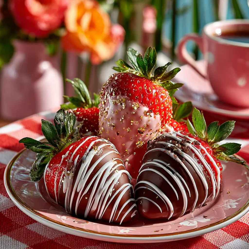 - The Tuxedo Look: Dip a strawberry in white chocolate first, let it set, then dip the sides at an angle into dark chocolate to create a “jacket” effect.