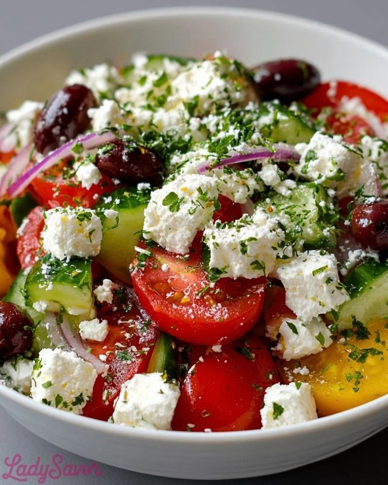 Revisiting cottage cheese through a savory lens is a game-changer for anyone tired of the same old salad routines. This Greek-inspired bowl proves that healthy eating doesn’t have to be complicated or boring. It’s a fast, vibrant, and deeply satisfying meal that relies on fresh textures and bright flavors rather than heavy dressings.