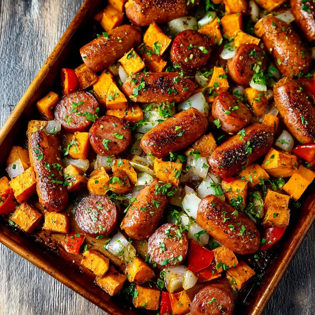 Flavorful Honey Garlic Sausage and Sweet Potato Sheet
