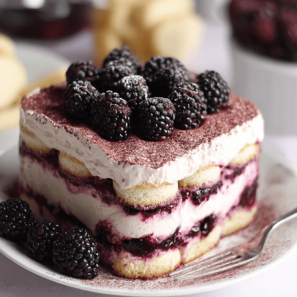 Fresh Blackberry Tiramisu with Mascarpone Cream.