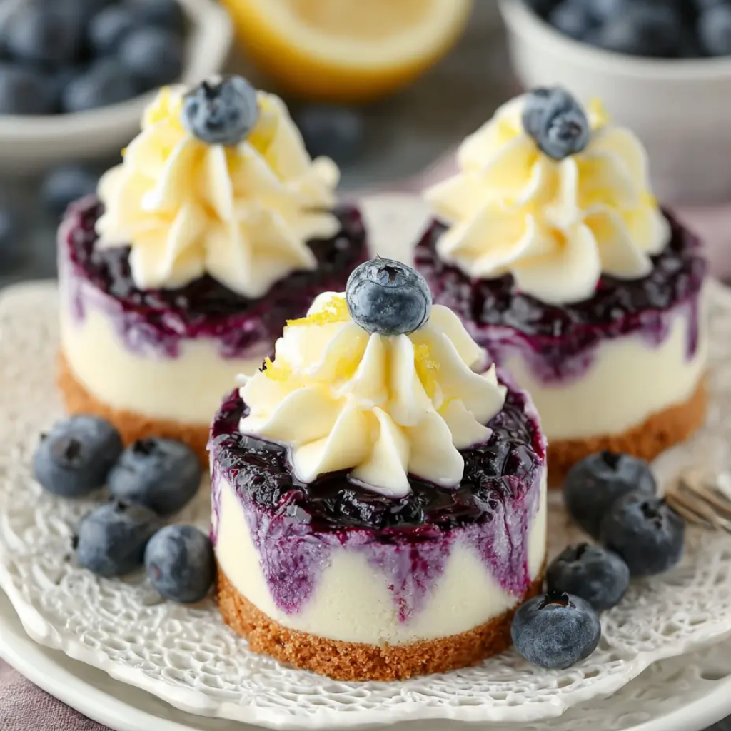 I started making mini cheesecakes like these when I wanted a dessert that felt thoughtful but practical. Something that could be made ahead, served neatly, and enjoyed without a fork-and-plate situation turning into a project. Lemon and blueberry turned out to be the perfect pairing. The lemon keeps the cheesecake filling clean and sharp, while the blueberries add bursts of fruit that soften each bite.