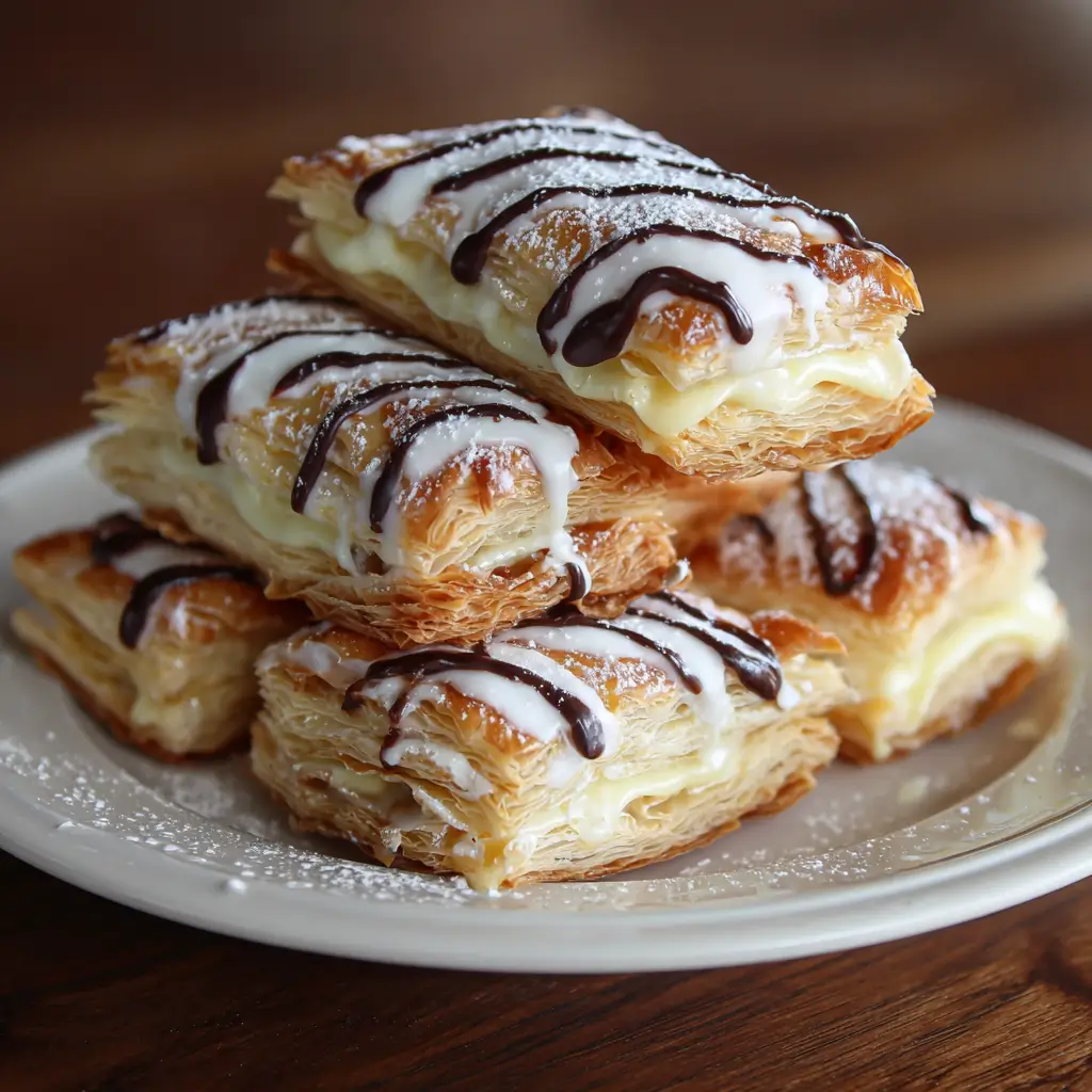 Mini Napoleon Pastries are elegant, layered desserts made with crisp puff pastry, smooth vanilla pastry cream, and a glossy glaze finish. This recipe relies on precise baking, proper pastry cream technique, and careful assembly to achieve clean layers and balanced textures. The final result is light, creamy, and refined—classic pâtisserie flavor in a perfectly portioned format.