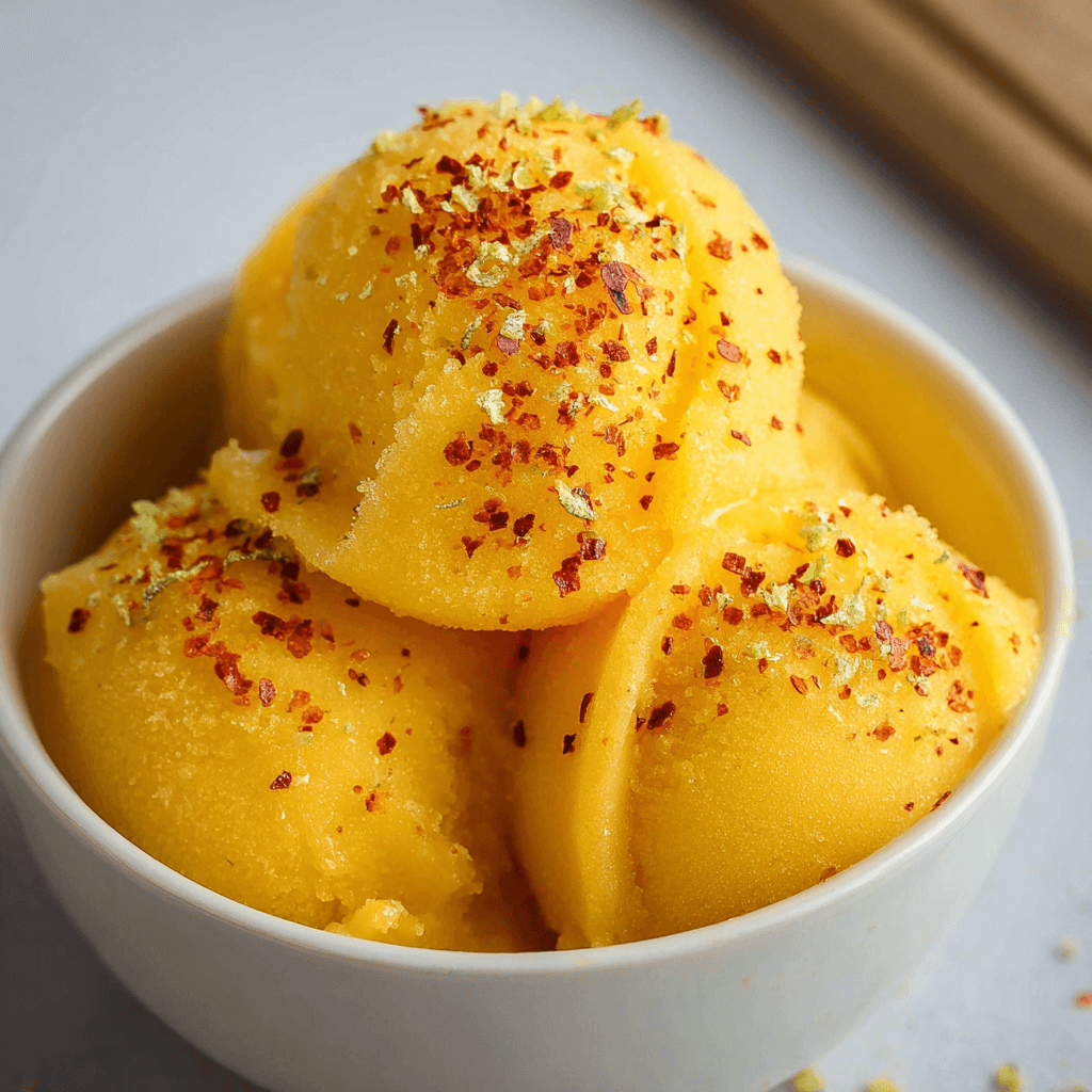 When the temperature climbs, most people reach for something sweet and icy to cool down. But there is a specific kind of refreshment that only comes from the combination of tropical fruit and a calculated hit of heat. This spicy mango sorbet isn’t just a frozen treat; it is a play on the classic street food flavors of “Mangonada” or “Mango con Chile.” It balances the dense, buttery sweetness of ripe mangoes with the sharp, electric vibration of chili and the bright, citrusy lift of lime.