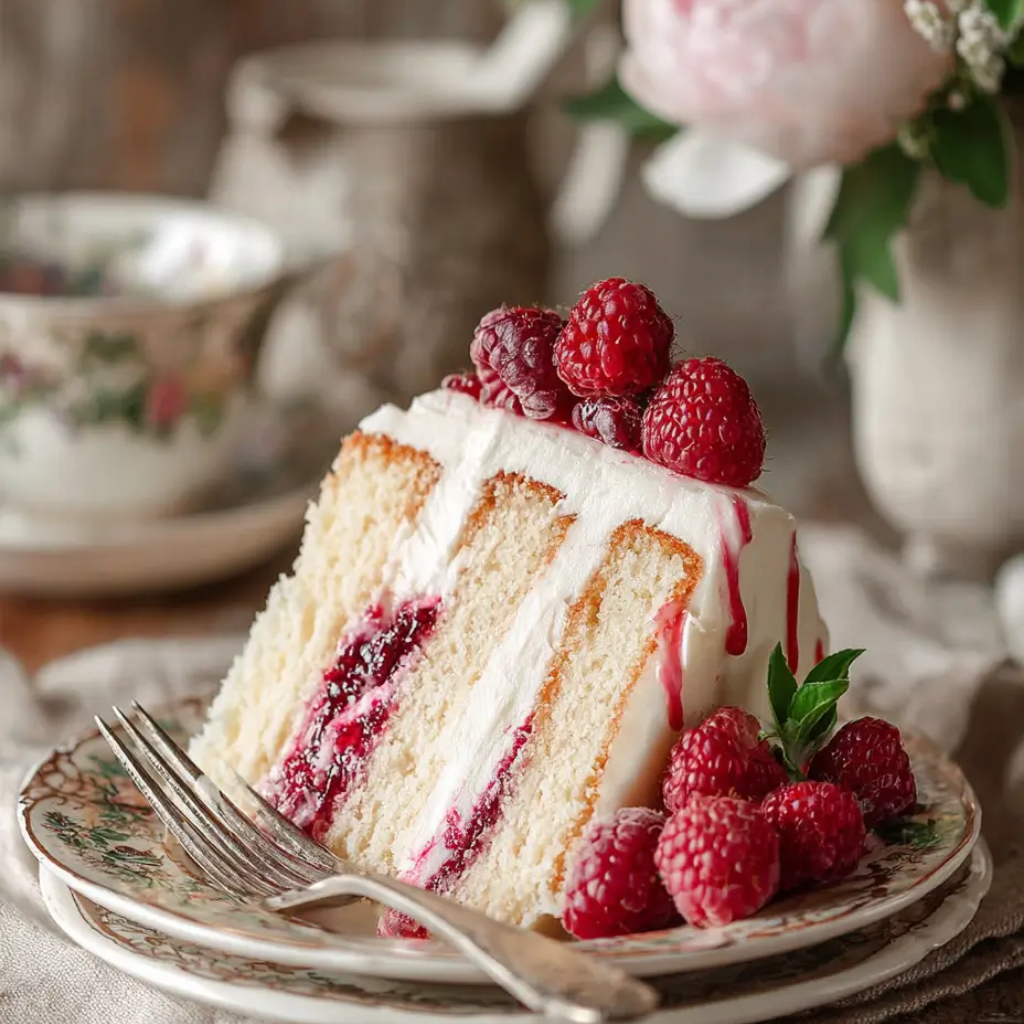 Vanilla Raspberry Layer Cake: A Delightful Celebration Dessert.